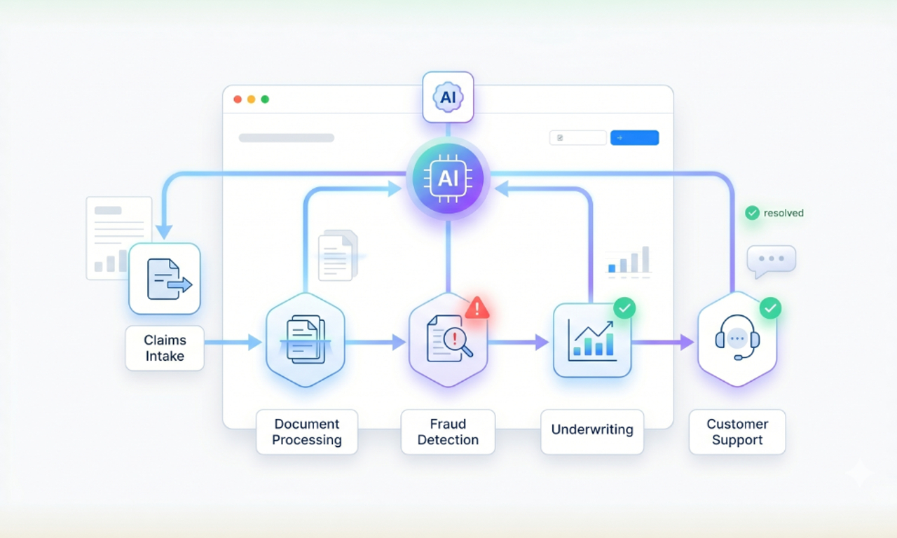 AI models analyze thousands of claims at once and detect anomalies that humans would miss.