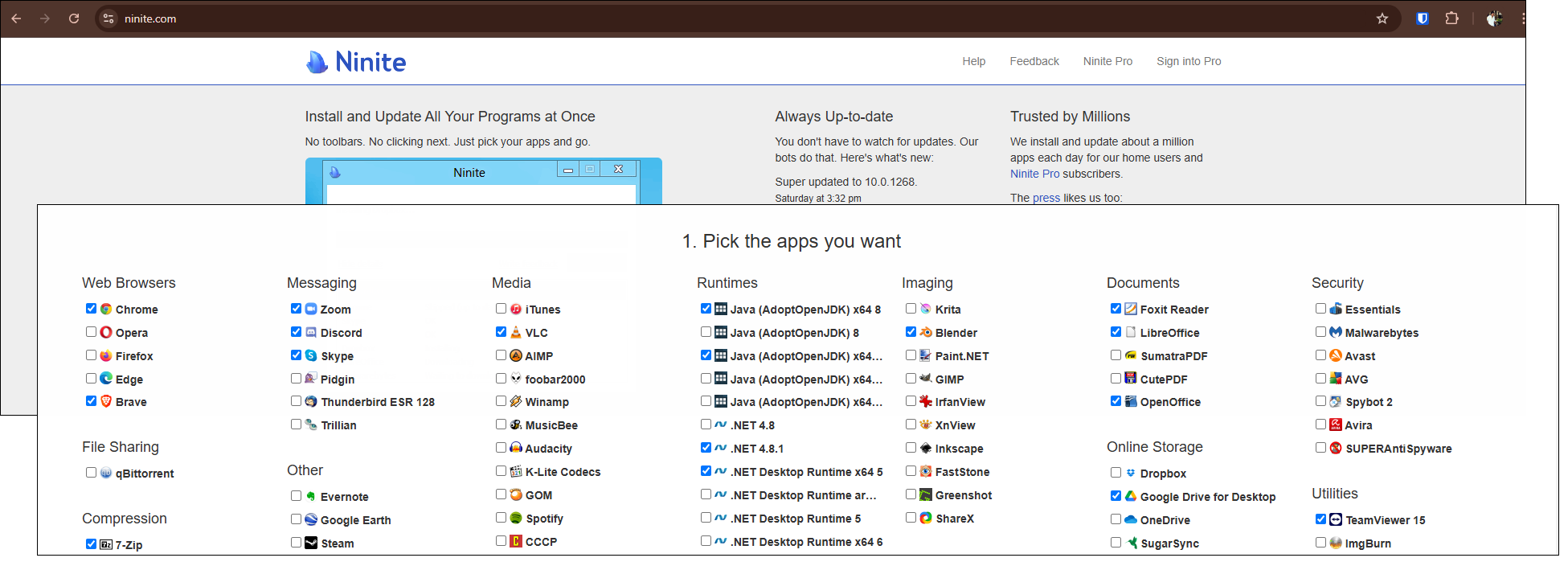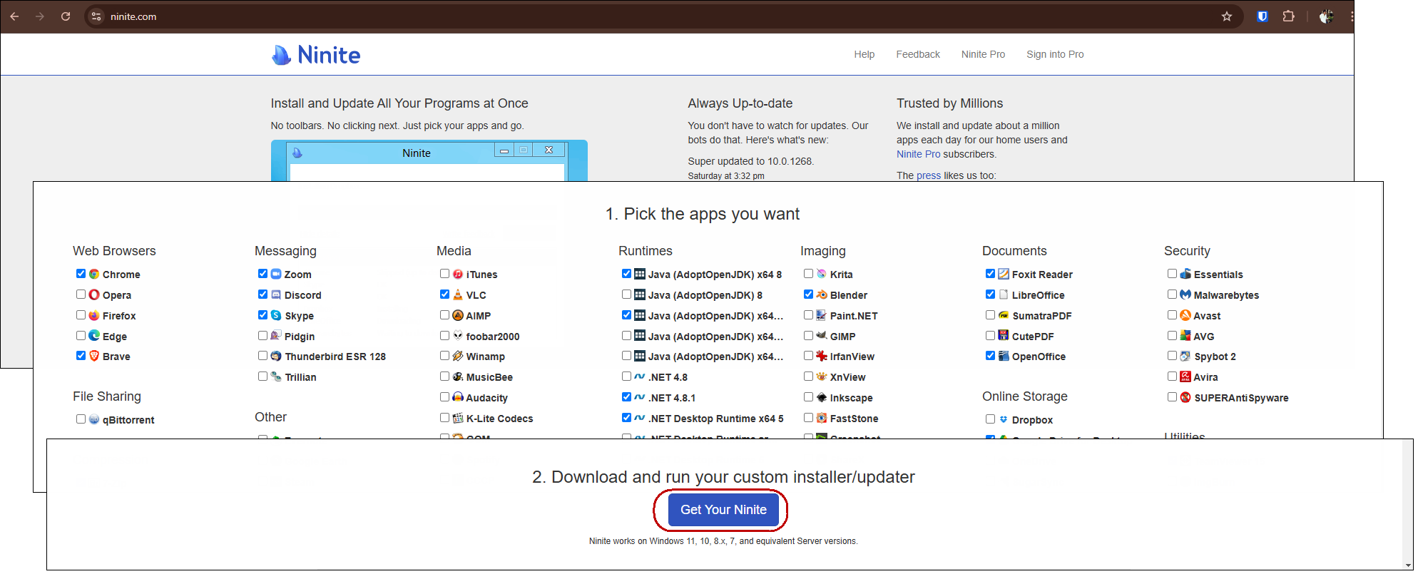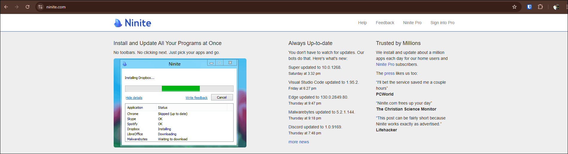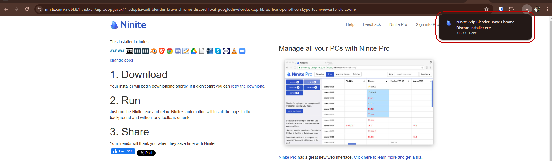 Quick Installation: Use Ninite to install multiple apps simultaneously with a single click, saving time and effort.
