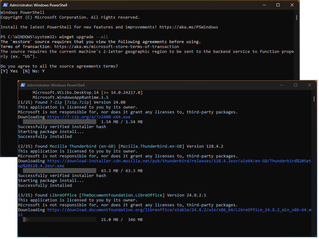 Command-Line Simplicity: Use Windows Package Manager (Winget) to update all apps with a single command in Command Prompt or Powershell.