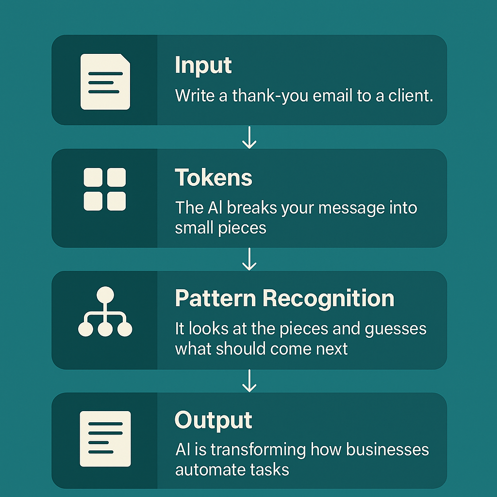 At its core, an LLM is trained on tiny pieces of text called tokens. It learns how words tend to appear together and which patterns sound most natural.